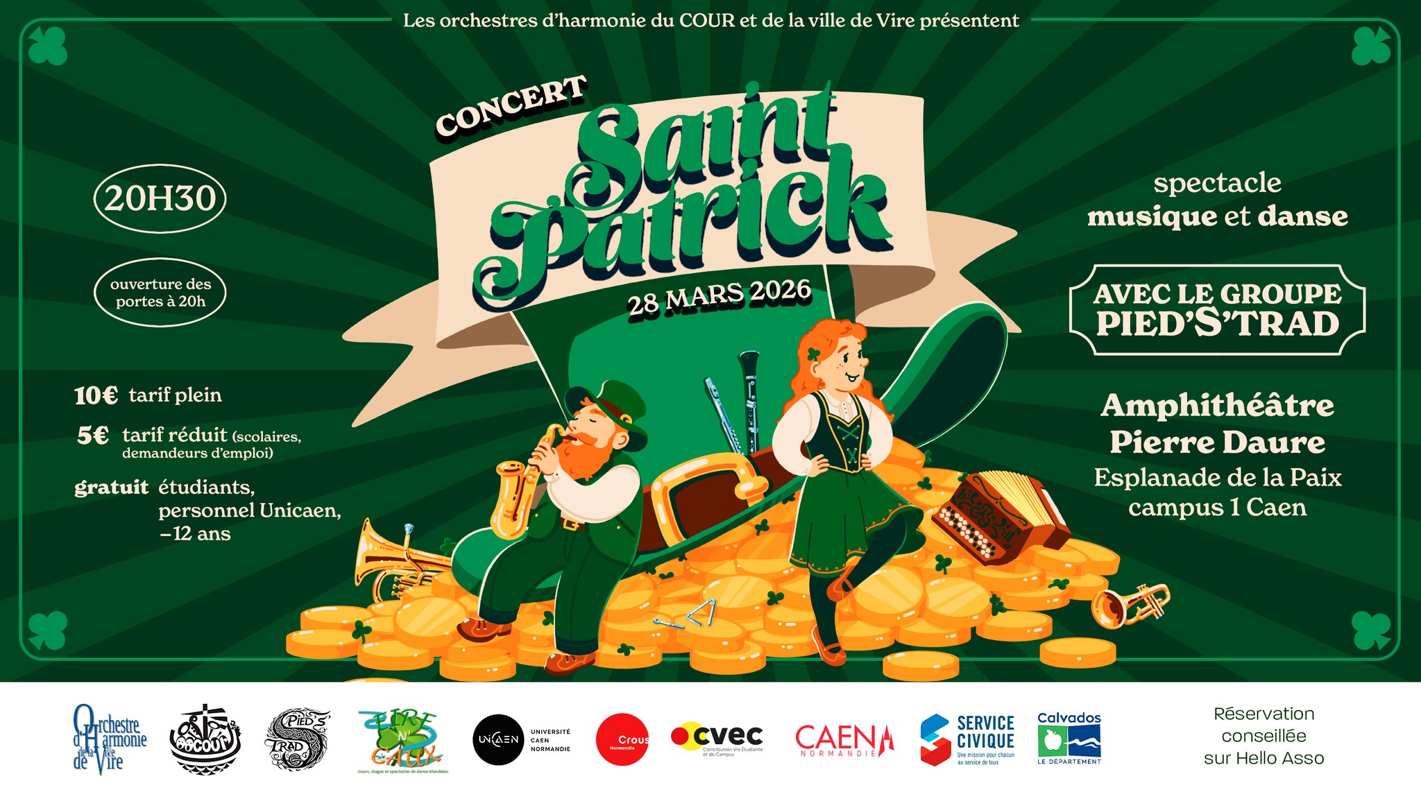 L’Orchestre d’Harmonie du COUR s’associe à l’orchestre d’harmonie de Vire Normandie afin de vous proposer un spectacle sur la thématique de la Saint-Patrick.