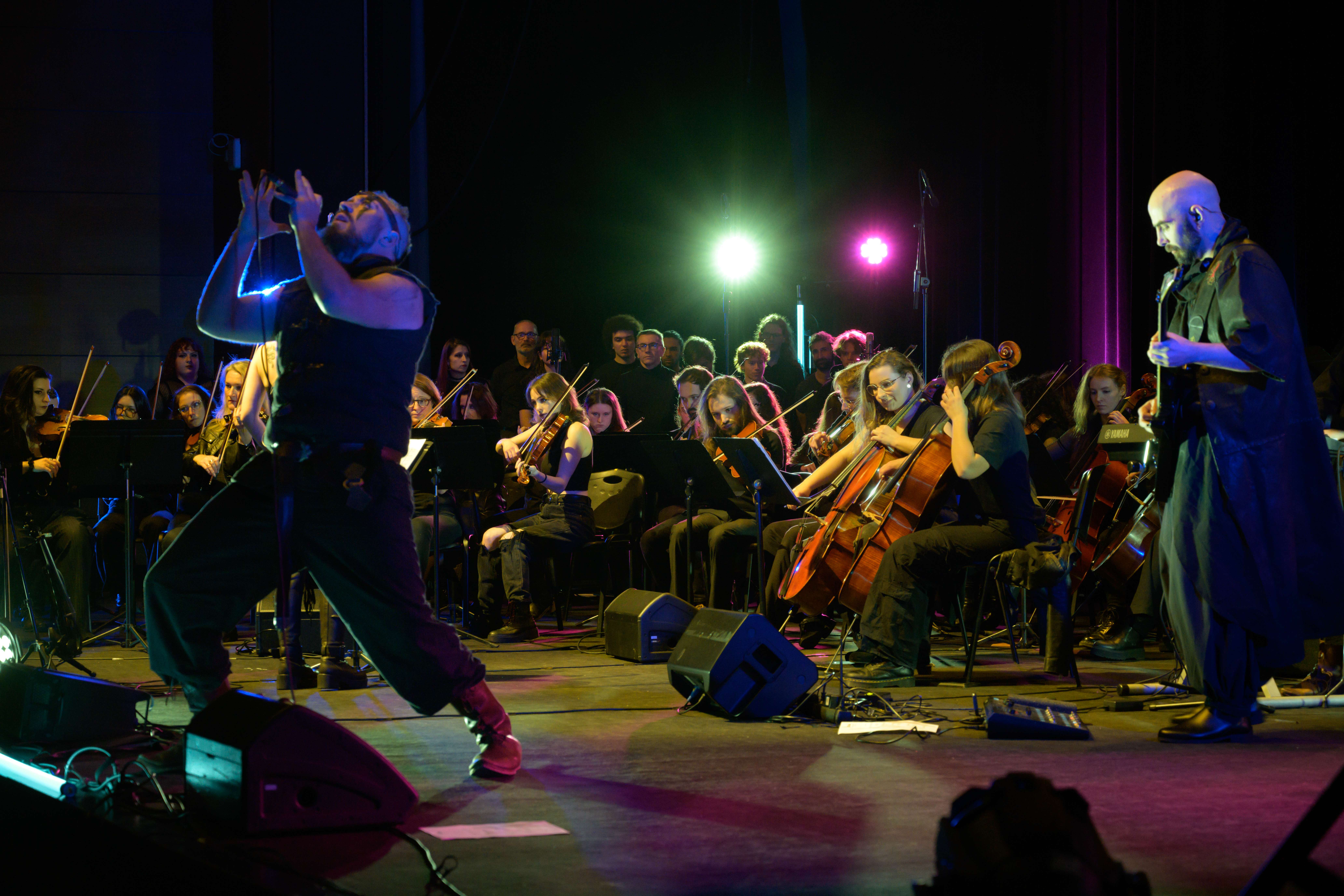 C’est non sans joie et émotion que Camille Dominique, cheffe de l’orchestre à cordes du COUR et membre des groupes Drenaï et Adaryn, a amplement réalisé son rêve: convier un public hétéroclite, mêlant amateur·ice·s de musique metal et personnes totalement néophytes, à en apprendre davantage sur ce genre musical et écouter des morceaux des deux groupes arrangés pour orchestre.