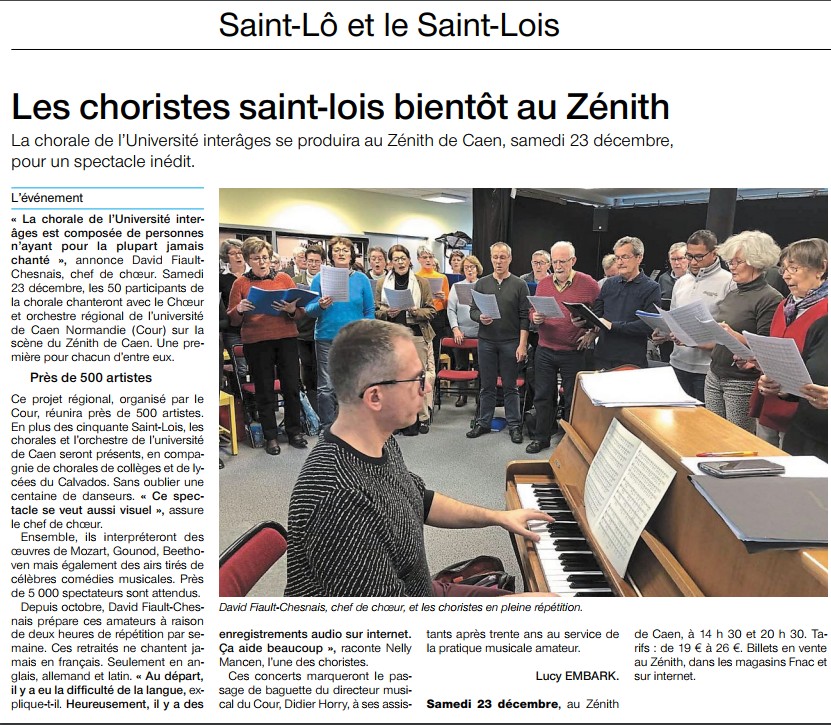 11 Novembre. Un samedi de répétition pour les choristes de TOUS EN COUR, événement prévu le 23 Décembre au Zénith.